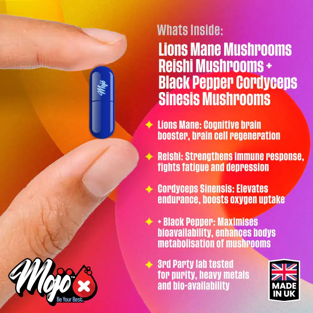 Cordyceps in MOJO™ Lions Mind enhances energy levels, boosts mental clarity, and supports cognitive function. 🍋 This mushroom improves oxygen utilisation and ATP production, ensuring sustained mental performance. By incorporating Cordyceps, MOJO™ Lions Mind maximises the health benefits of this potent adaptogen. 🌟