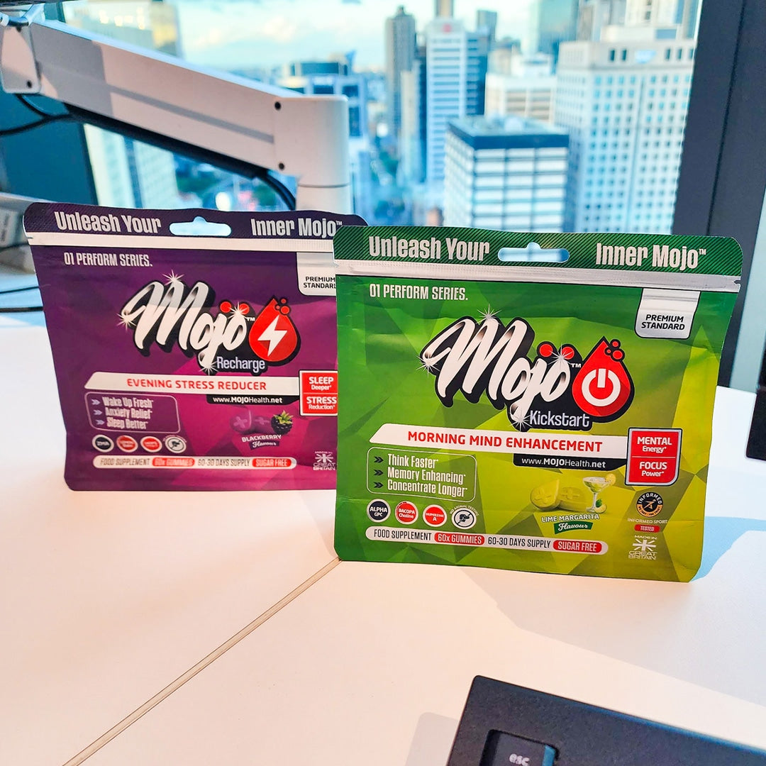 Imagine MOJO™ Recharge as your night-time guardian 🛡️ ensuring your slumber is as peaceful as a still lake at dawn. 🌌 It nurtures your mind and body, preparing you for a day ahead with calm serenity. 🌿 Now, enter MOJO™ Kickstart: your daytime champion, firing up your engines and boosting your energy levels as you seize the day. 🚀 Pairing these with MOJO™ Lions Mind, a mind-enhancing stack with Lion’s Mane mushrooms, ensures you are at your peak—day and night! 🧠💪